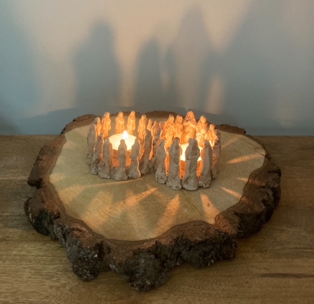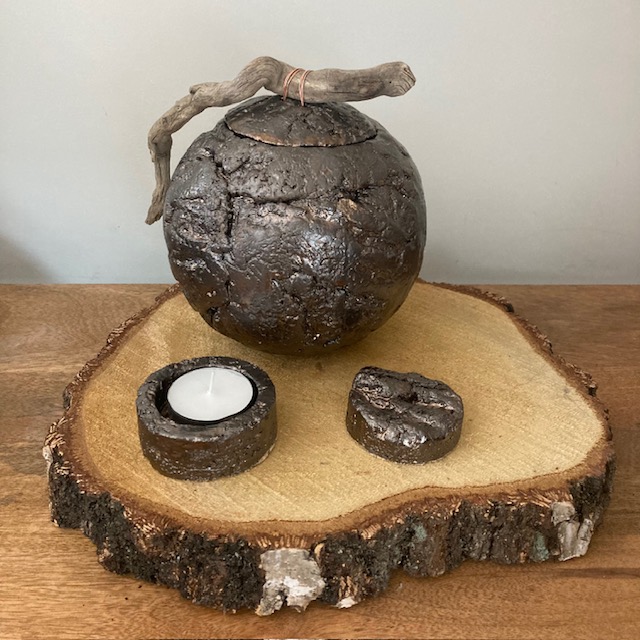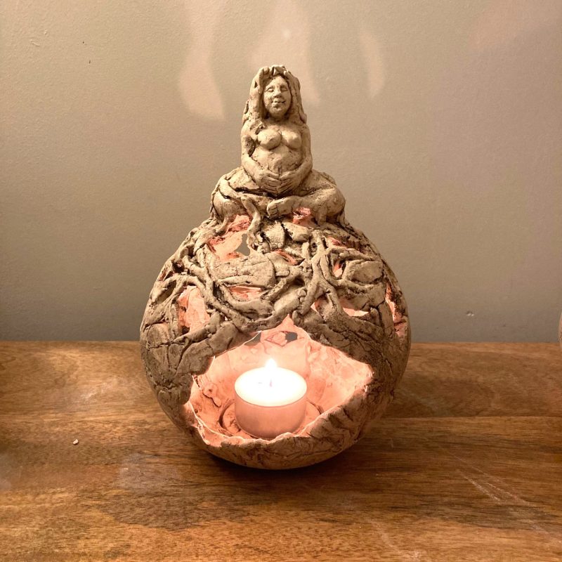 Beeldend kunstenaar Jolanda Hartog creëert haar beelden en ceremoniële objecten vanuit haar hart en intuïtie. Zij haalt haar inspiratie uit spirituele tradities of persoonlijke ervaringen en verbeeldt dat op ‘eigen-wijze’ in de klei. Zo maakt zij o.a. altaar beelden, wandobjecten, smudge kelken, maar ook urnen in opdracht.